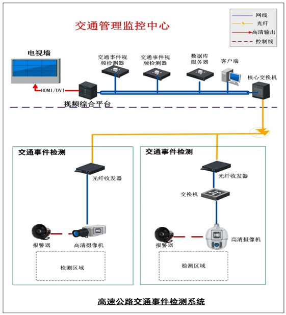 高速公路交通監(jiān)控系統(tǒng)其主要功能是借助現(xiàn)代交通流觀測、誘導與控制的相關理論,并利用計算機技術、閉路電視監(jiān)視技術、信息多媒體技術等領域的科技發(fā)展成果,對高速公路的交通運營狀況、車輛行駛情況以及道路環(huán)境狀況進行全面觀測,并對沿途車輛的行駛路線、行駛方式進行有效誘導與控制。
