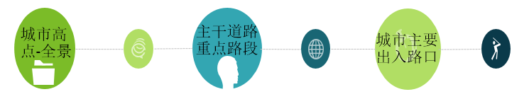在城市路口高點部署全景攝像機,其中主要路段進行重點區(qū)域部署,在城市的主要出入口設置卡口。
