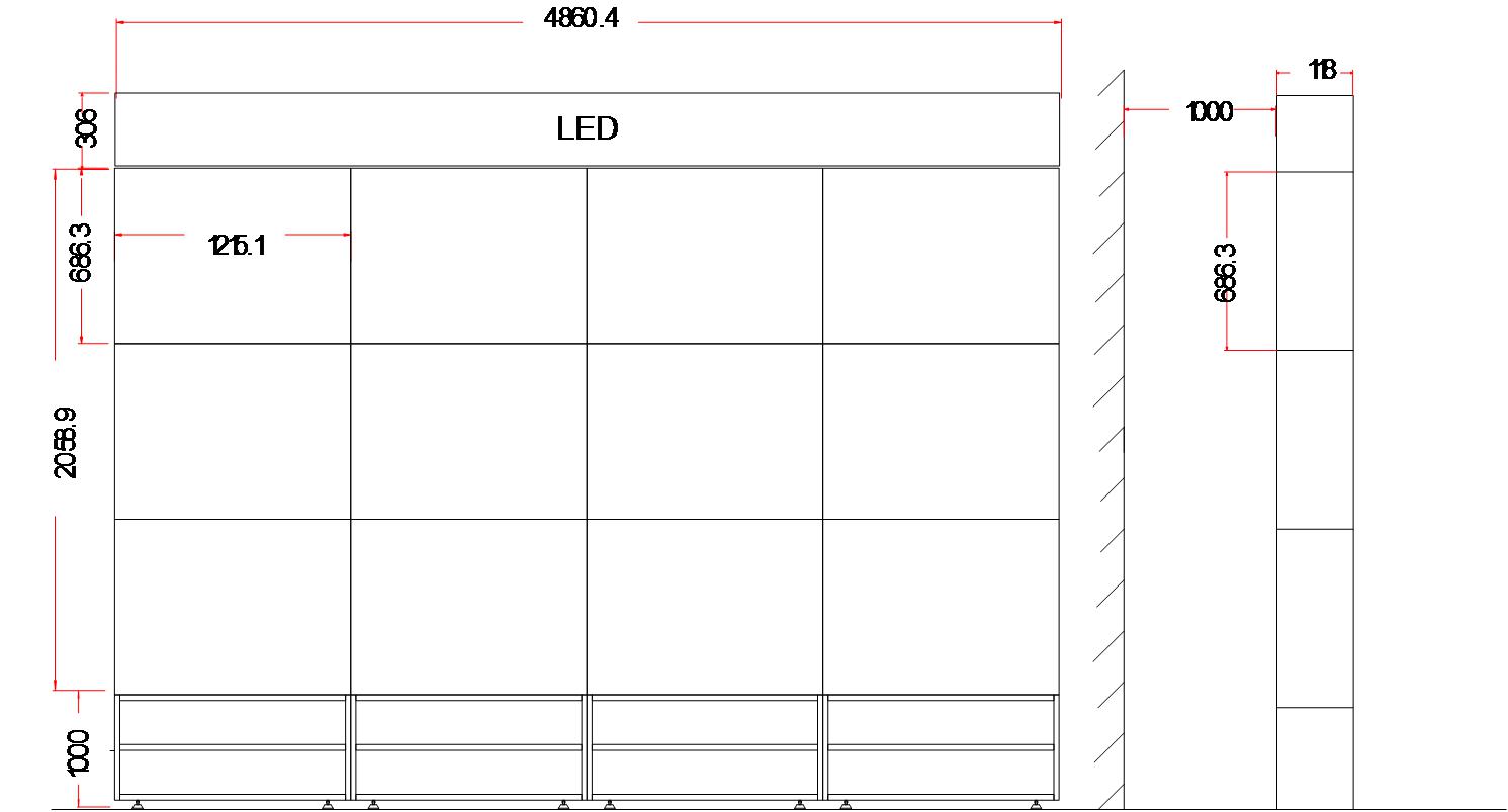 單屏尺寸:1215.3.0(W)×686.1(H)×118.0(D)(單位mm)