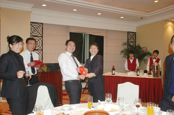 會議結(jié)束后全體員工歡聚一堂,共進晚餐,員工之間相互激勵士氣,增進了感情,強化了內(nèi)部溝通,彼此給予認同。