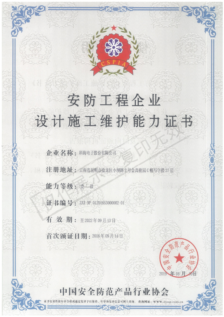 安防工程企業(yè)設(shè)計施工維護能力證書